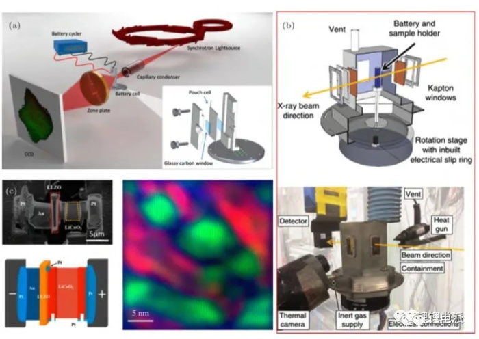 圖14 (a)原位透射X射線成像技術、(b)原位高頻X射線斷層掃描儀結合熱成像技術以及(c)原位透射電子顯微鏡技術在 鋰電池測試分析中的應用