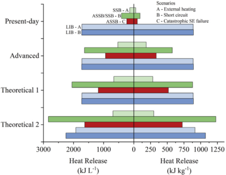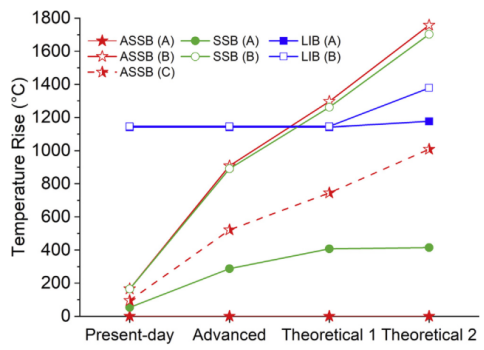 結果表明,短路的全固態電池具有比傳統鋰離子電池高得多的溫度,這些熱量的釋放可能會通過易燃包裝或附近的其它材料而導致火災。